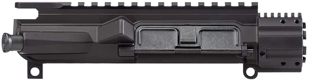 The M4E1 upper receiver is a one-piece design combining the handguard mounting platform with the upper itself. It is machined from 7075-T6 aluminum with, M4 feedramps, .250 takedown pin holes, and supports barrels with a diameter up to 1″. Included is a barrel nut and wrench, port door, and forward assist. NOTE: This upper is not piston-kit compatible. Requires charging handle, barrel, handguard, gas block, muzzle device, gas tube and BCG (Bolt Carrier Group) to complete.