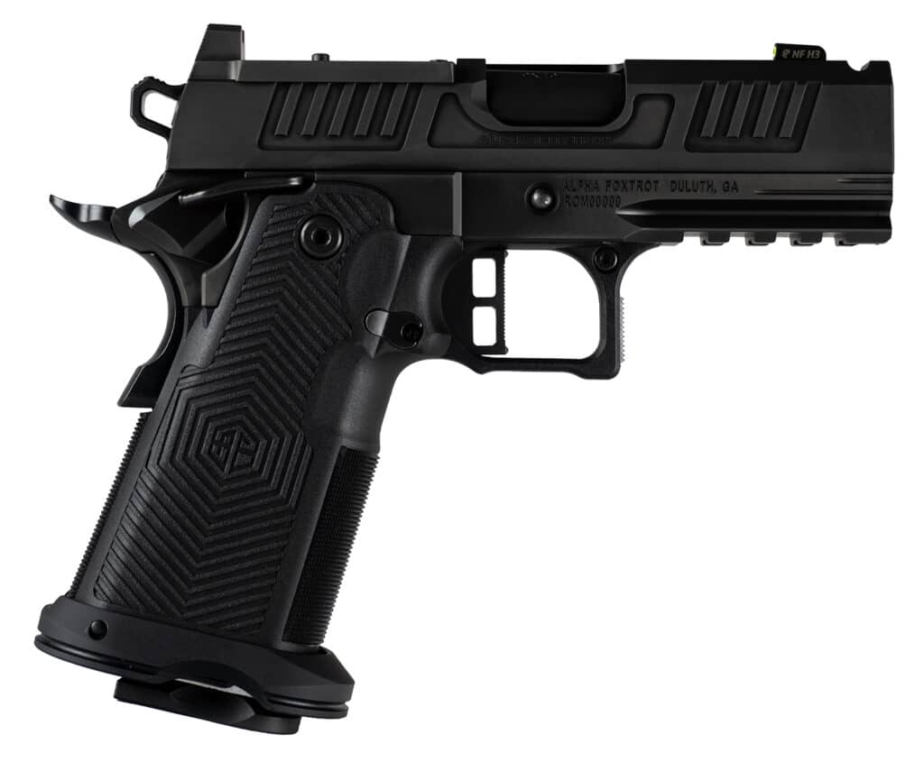 Compact yet powerful, the ported AF1911 Romulus reduces muzzle rise and felt recoil, giving shooters faster follow-up shots and greater control without adding bulk. Featuring a trigger with a crisp 3.50 lb pull weight; Night Fision sight; ambidextrous thumb safety; flared magwell; black DLC satin coating for superior durability and Picatinny rail. Includes MOS adapter plate, RMSC and RMR plate, 17rd and 20rd magaine.