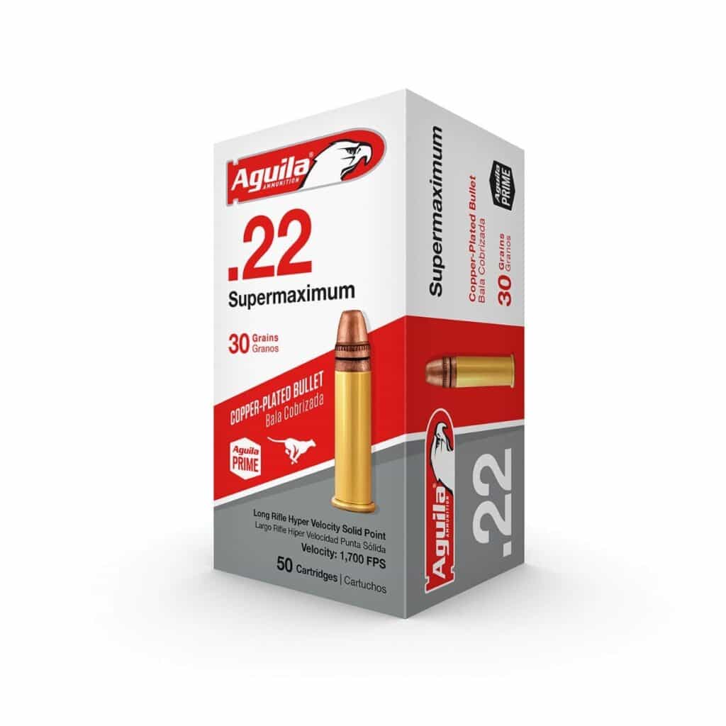 Aguila Ammunition .22 LR Super Max Rifle Ammo – 30 Grain | Copper Plated Solid Point | 50rd Box