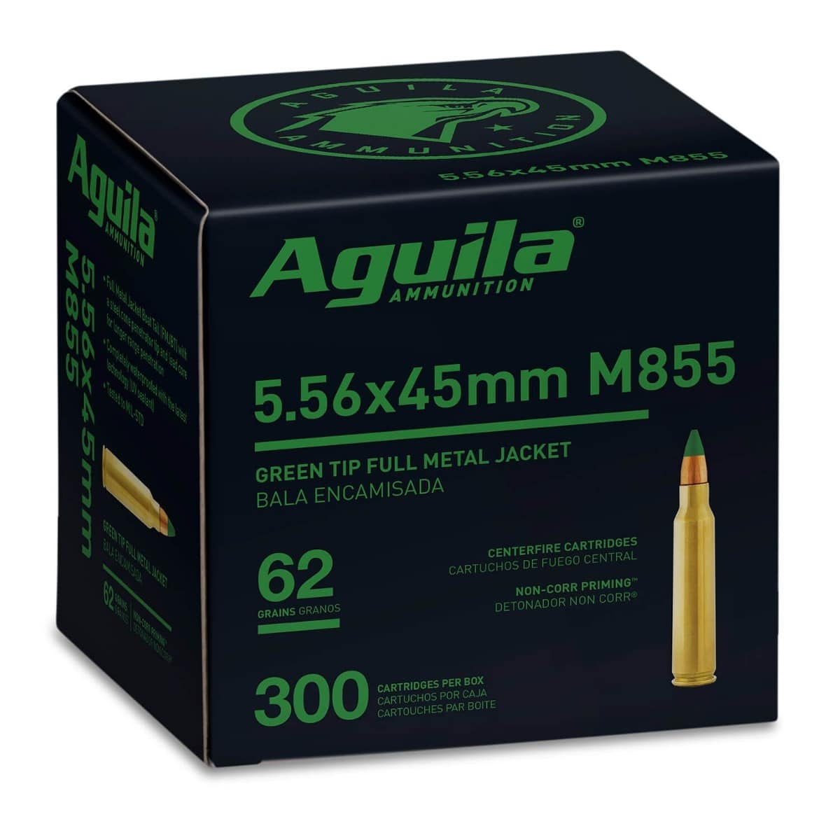 Aguila Ammunition 5.56NATO Rifle Ammo – 62 Grain | FMJ Green Tip | 1200rd Case