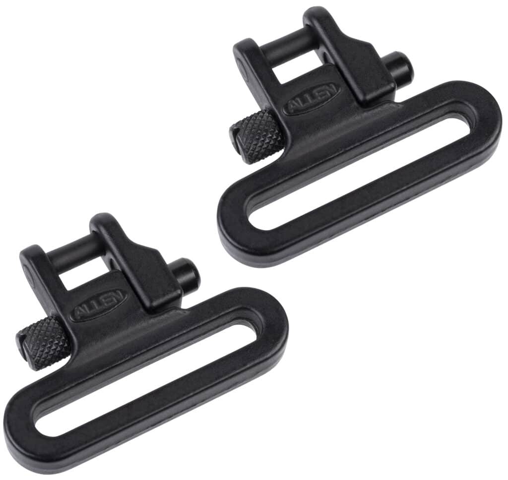 The Allen Magnum Swivel Set is tested to 300 pounds with a knurled threaded locking screw that holds the swivel securely on the sling swivel stud. The metal-forged cast swivel design provides a quiet and solid foundation for anchoring slings.