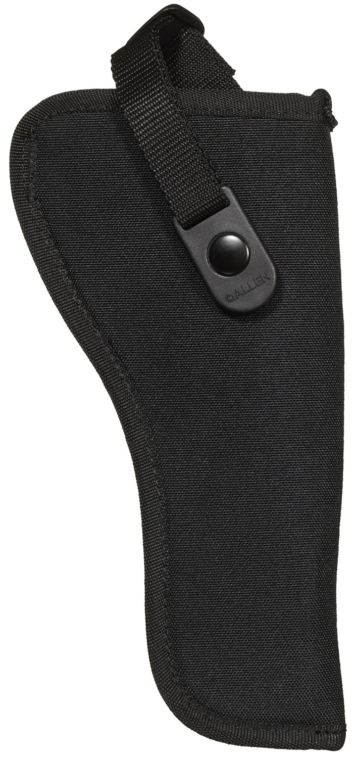 The Allen Company Cortez Handgun Holster provides a lightweight, rugged exterior, designed for right-handed shooters. Snag-proof lining, with a web sight guard, helps you with faster draw speeds while the molded belt loop fits belts up to 2-inches wide. Keep your firearm secure when not in use, ready when you are, with an adjustable strap. This model is compatible with 5 to 6.5-inch barrel, medium-large frame double action revolvers and other makes/models of similar size.