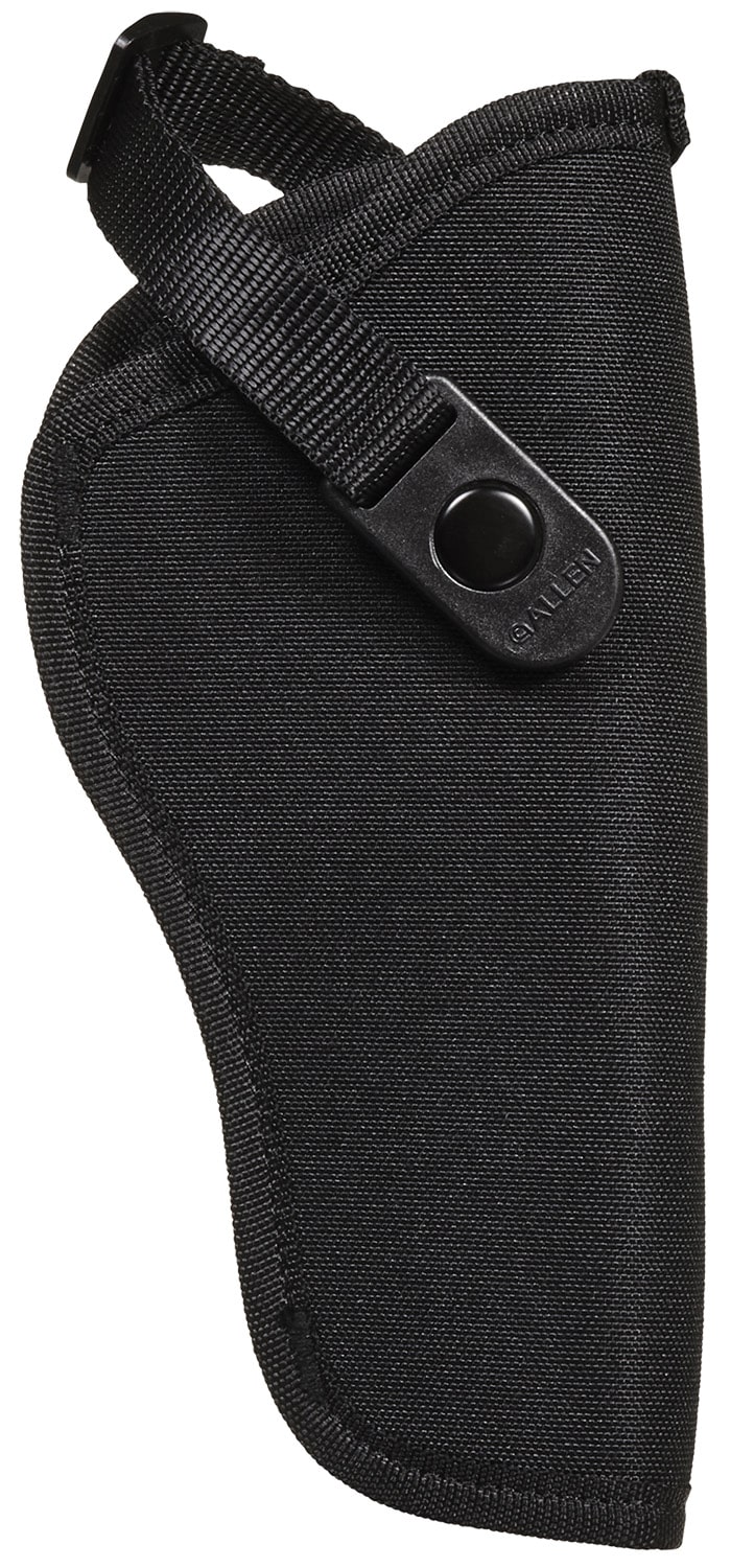 The Allen Company Cortez Handgun Holster provides a lightweight, rugged exterior, designed for right-handed shooters. Snag-proof lining, with a web sight guard, helps you with faster draw speeds while the molded belt loop fits belts up to 2-inches wide. Keep your firearm secure when not in use, ready when you are, with an adjustable strap. This model is compatible with Glock G20, 21; 4.5 to 5-inch barrels, large frame semi-auto handguns and other makes/models of similar size.
