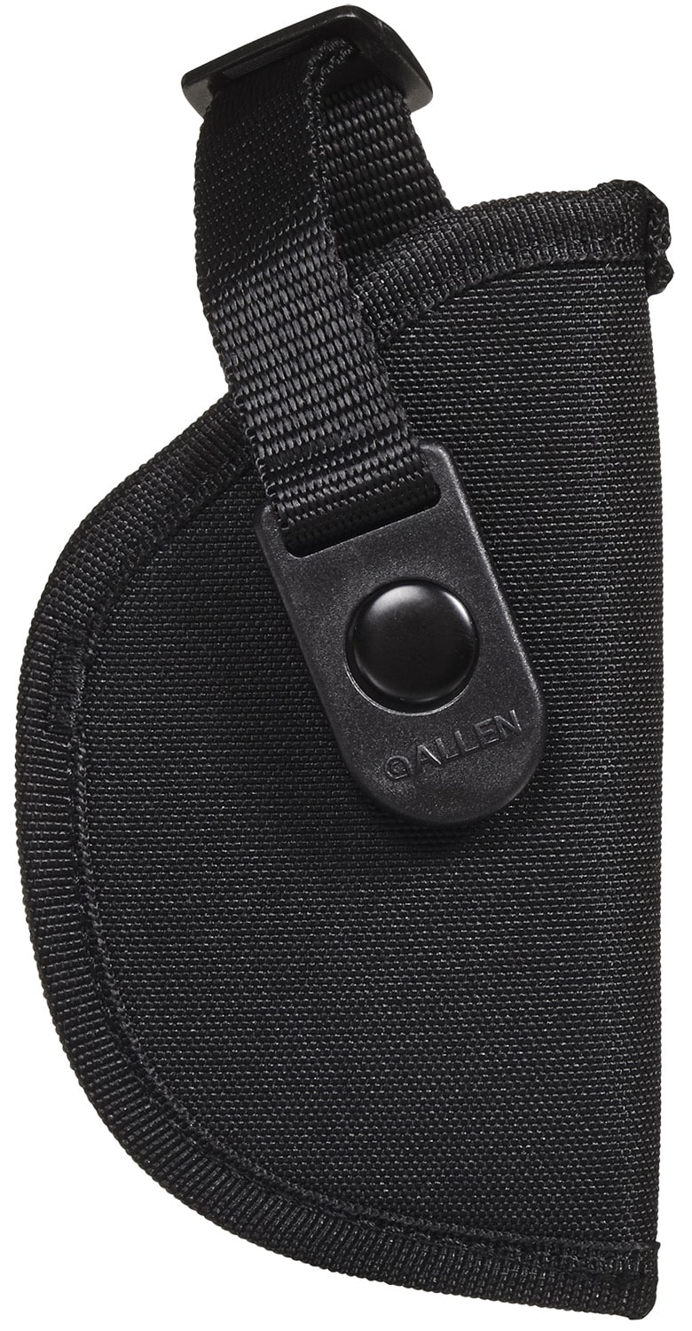 The Allen Company Cortez Handgun Holster provides a lightweight, rugged exterior, designed for right-handed shooters. Snag-proof lining, with a web sight guard, helps you with faster draw speeds while the molded belt loop fits belts up to 2-inches wide. Keep your firearm secure when not in use, ready when you are, with an adjustable strap. This model is compatible with Smith & Wesson Bodyguard 380; Ruger LCP, LCP II; Sig Sauer P238, P938; small frame, semi-auto handguns and other makes/models of similar size.