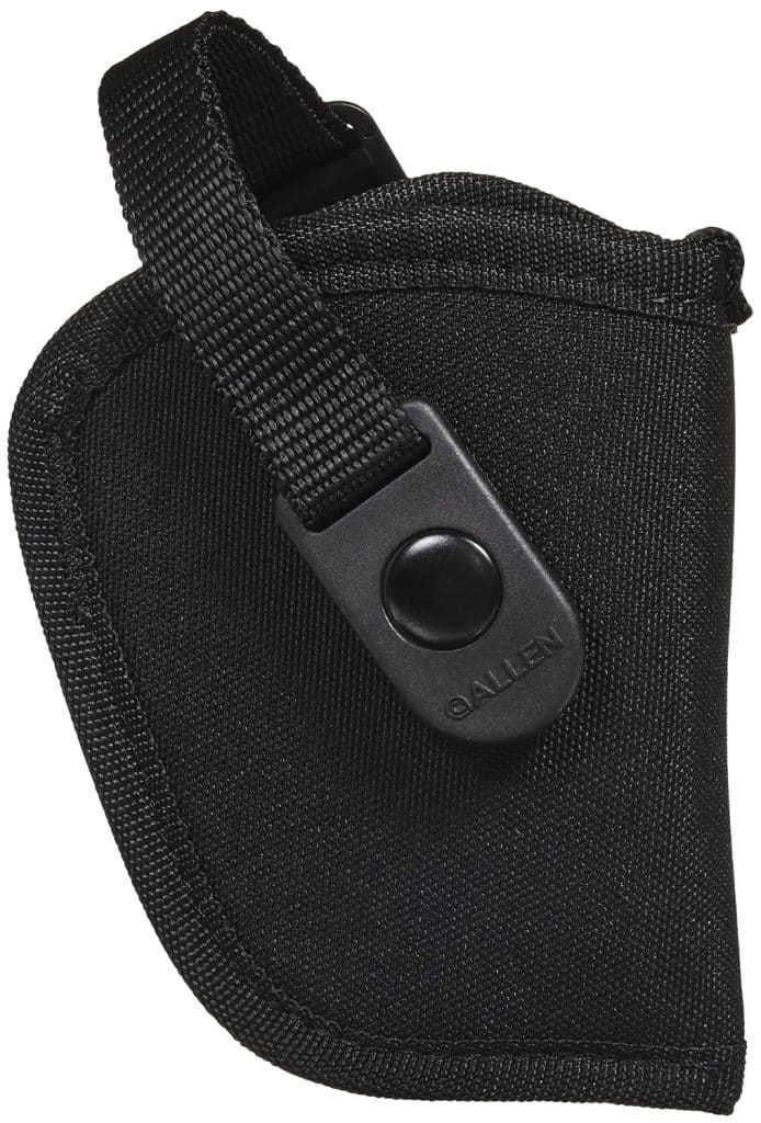 The Allen Company Cortez Handgun Holster provides a lightweight, rugged exterior, designed for right-handed shooters. Snag-proof lining, with a web sight guard, helps you with faster draw speeds while the molded belt loop fits belts up to 2-inches wide. Keep your firearm secure when not in use, ready when you are, with an adjustable strap. This model is compatible with 2-inch barrel, small frame 5-shot revolvers with hammer spur and other makes/models of similar size.
