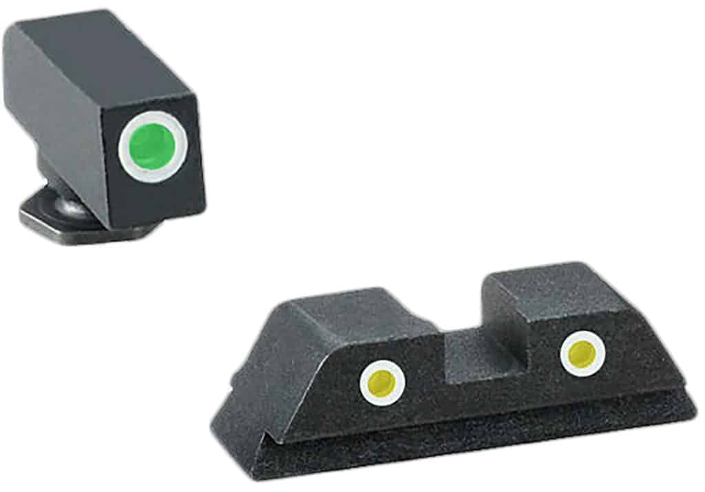 AmeriGlo GL115 Classic Tritium Sight Set for Glock Green Tritium White Outline Front Sight-Yellow Tritium White Outline Rear Sight