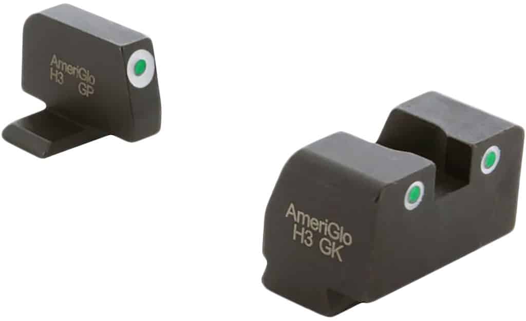 AmeriGlo XD181 Optic Compatible Sight Set for Springfield Armory XD Green Tritium White Outline Front Sight-Green Tritium White Outline Rear Sight
