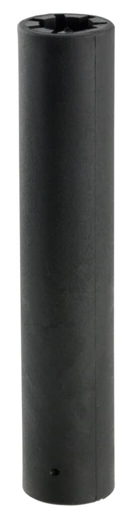 The Archangel 10/22 faux suppressor is designed to fit on a standard-profile Ruger 10/22 barrel. The black polymer faux suppressor slips into place and is secured by a small pin (supplied) that engages the OEM dove tail. It is fully compliant with State and Federal laws. It is also a cosmetic accessory that creates the ultimate Spec-Ops look, requiring only the removal of the front-sight post from the OEM barrel. Made in the USA.