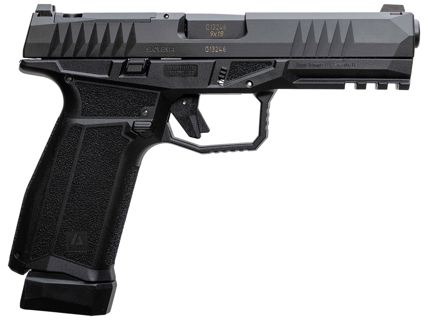 The AREX Delta is a true double action striker-fired pistol. The Deltas striker spring is only partially compressed as a cartridge is chambered. Modular design enables you to customize the firearm to your needs and preferences. Removable front and rear frame inserts incorporate slide guides and hold the complete fire control mechanism yet only the front insert is a serialized part that must remain with the firearm while everything else may be customized or exchanged if necessary or desired. Includes two magazines and five standardized mounting plates to provide secure and low profile interface for most proven miniature red dots.