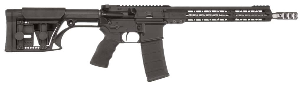 Armalite’s M153GN is the flagship competition rifle built to win. This rifle is compact, light, and ultra-fast. The low profile handguard, with a railed front sight base, covers a free-floating stainless steel barrel with ArmaLite’s own tunable muzzle brake. An adjustable gas block also allows the rifle to be individually set for optimal performance. It has an MBA-1 lightweight precision stock (adjustable LOP/comb height), Timney single-stage trigger, and Raptor ambidextrous charging handle. This carbine model has a 13.5″ barrel pinned and welded to muzzle brake to create a 16″ barrel and a carbine-length gas system beneath a 12″ free-float 3-gun handguard. It includes a 30-round magazine.