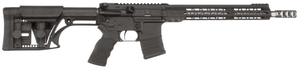 Armalite’s M153GN is the flagship competition rifle built to win. This rifle is compact, light, and ultra-fast. The low profile handguard, with a railed front sight base, covers a free-floating stainless steel barrel with ArmaLite’s own tunable muzzle brake. An adjustable gas block also allows the rifle to be individually set for optimal performance. It has an MBA-1 lightweight precision stock (adjustable LOP/comb height), Timney single-stage trigger, and Raptor ambidextrous charging handle. This carbine model has a 13.5″ barrel pinned and welded to muzzle brake to create a 16″ barrel and a carbine-length gas system beneath a 12″ free-float 3-gun handguard. It is CO compliant and includes a 10-round magazine.