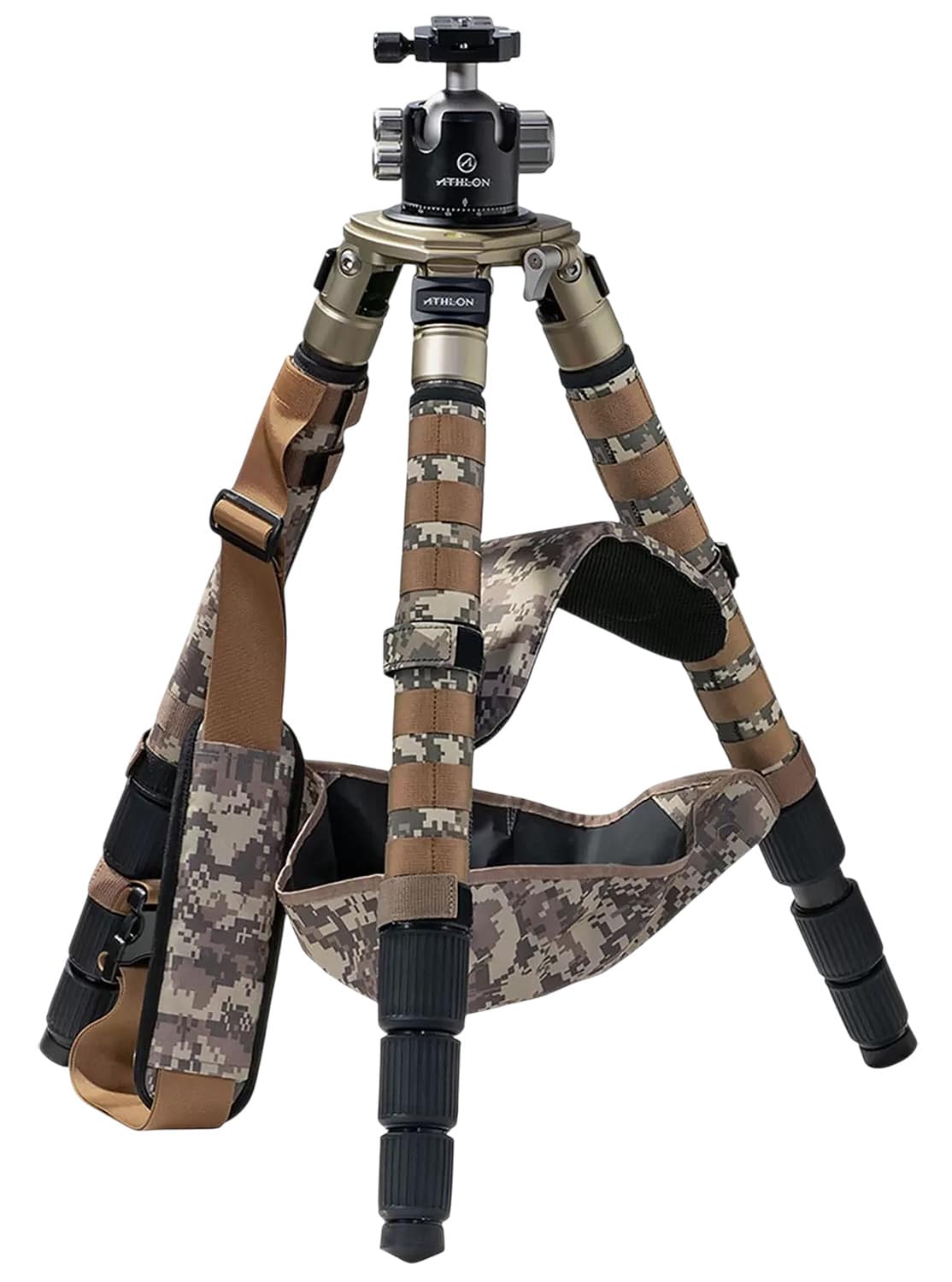 Athlons 10-layer vibration-dampening carbon fiber tripods come ready to support your rifle with the included bowl mount or ball head. The ball head features Friction Control, Fluid Pan Control, Ball Lock, and Arca compatibility for direct-to-rifle attachment. Includes, tripod hammock, shoulder pad, sling, padded case, and optional spiked feet.
