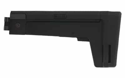 The B5 Systems AK stock 4.5mm variant offers a drop-in upgrade for the factory 4.5mm folding stock and mounts by the factory 4.5mm pin to the folding trunnion. It features improved ergonomics, an adjustable length of pull, QD/fixed sling mounts, optic rail cutout and a cushioned buttpad. Proudly made in the USA of composite materials and steel hardware.
