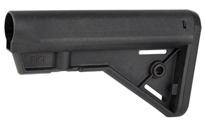 Building upon the success of the B5 Systems Bravo stock, B5 has incorporated its features into an A1 length fixed buttstock. The Bravo-C stock maintains the Bravo cheekweld, one piece anti-rotation quick disconnect sling mount, fixed sling mounts, no slip cushioned buttpad, and mounts via a setscrew on most carbine receiver extensions. Made of Milspec materials and finishes. Proudly made in the USA.