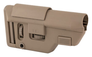 The B5 Systems Collapsible Precision Stock (CPS), Short. Building upon the venerable cheek profile of the B5 Sopmod and Bravo stocks, the Precision stock incorporates an adjustable cheekpiece and buttpad while fitting Milspec carbine receiver extensions. Features internal tensioners, ambidextrous fixed and quick disconnect sling mounts, gross length of pull adjustment via pull down with lockout, underside M-LOK accessory mount, and color matched hardware. The CPS Short fully collapsed will clear the M110 charging handle. Proudly made in the USA.
