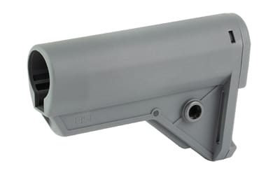 The Sierra K is a purpose-driven compact stock, optimized for use on PDW and compact weapon systems. Features include reduced overall size and slim cheek profile, snag-free adjustment lever, limited rotation QD and integral fixed sling mounts, internal tensioners, and anti-slip buttpad. Mounts via shortened compact Mil-Spec receiver extension.
