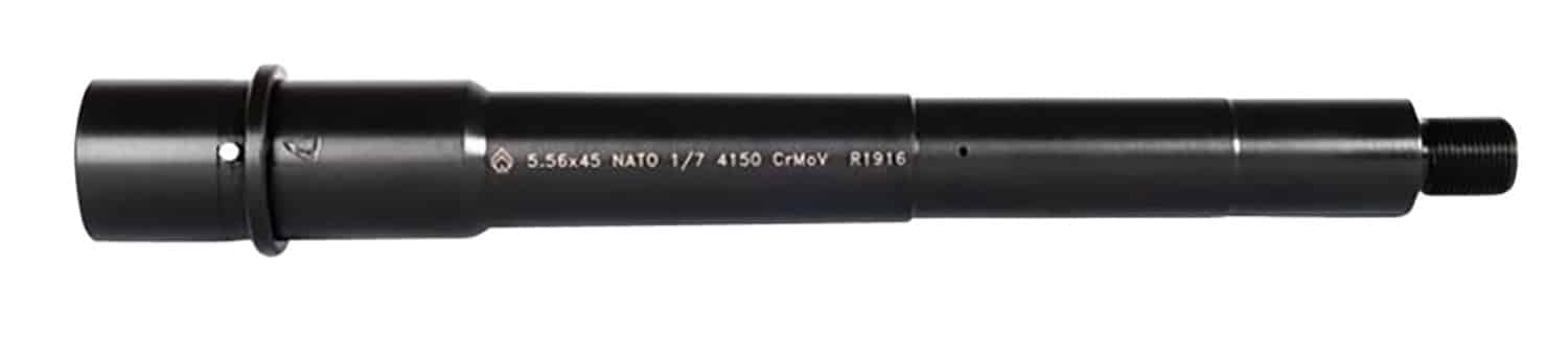 This 5.56 chambered 8 inch Modern Series Barrel is machined from 4150 Chrome Moly Vanadium steel with a QPQ Corrosion Resistant Finish and QPQ coated M4 feed ramp extension.