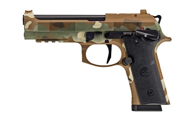 The Beretta 92XI Combat Series pays homage to the heritage of military camouflage patterns, recognizing the vital role these patterns play in enhancing soldier concealment and mission success. Each pistol in this exclusive collection is meticulously hand-painted by a disabled veteran artist. Featuring iconic American combat camouflage patterns, each piece represents a story of sacrifice and service. The 92XI Combat series features the 92XI Single-Action Only (SAO) pistols. The 92XI brings the long-awaited frame mounted safety to the standard 92 family of products, as well as a single action only variant and various ergonomic enhancements. The frame mounted safety offers an ambidextrous solution, bringing the safety lever more in reach with natural ergonomics. The 92XI features the X-treme-S single action only and flat faced trigger, performance DLC coated trigger components and a lightweight skeletonized hammer, allowing for a crisp trigger pull with the option to go cocked and locked. The 92XI carries forward the Vertec style frame, a fiber optic front sight for faster sight acquisition, and the option for MRDS optics mounting making this a high performing, reliable choice for personal defense and competition.