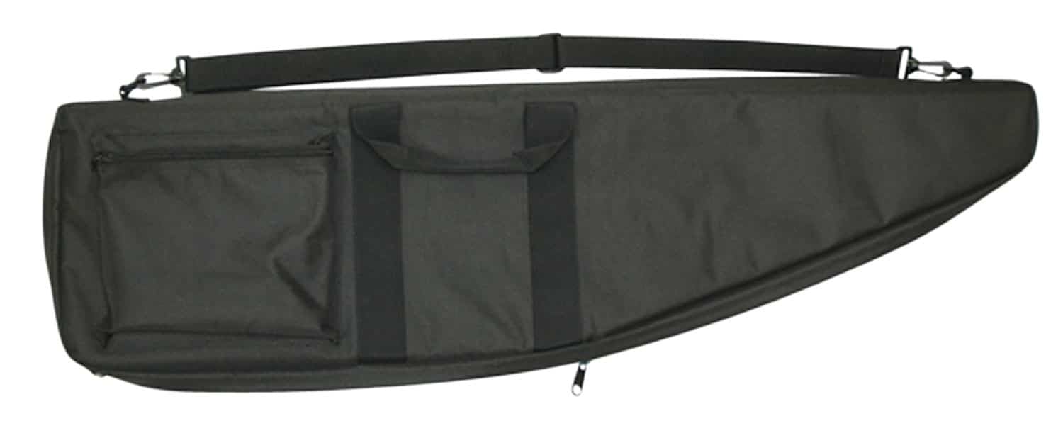 Bob Allen’s Tactical Rifle Case is constructed of water-resistant polyester with foam padding, carry handles and shoulder strap, and a nylon zipper. It also utilizes an external storage pocket. This 42″ model has a black finish.