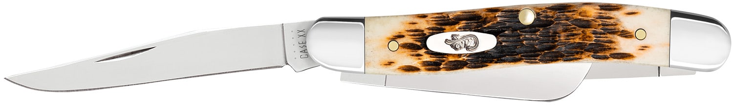 This Medium Stockman is a part of the Amber Bone Family. The Amber Bone color and Peach Seed jig are signatures of the Case brand and the true heart of the case line. Stockman’s pack three blades in a convenient but very practical pocket knife. The Clip and Sheepfoot blade sit on the pocket end while the Spey blade sits on the cap end. The Clip blade is commonly used as a multi-purpose blade and preferred for detail work. The Sheepfoot blade allows for added strength at the point making it great for carving and achieving a clean cut. The Spey blade is commonly used as an all-purpose utility blade. This knife is constructed with Case Tru-Sharp stainless steel which is a special high-carbon steel that helps the blades hold an edge longer than conventional steel. It also offers extraordinary blade strength and corrosion resistance.