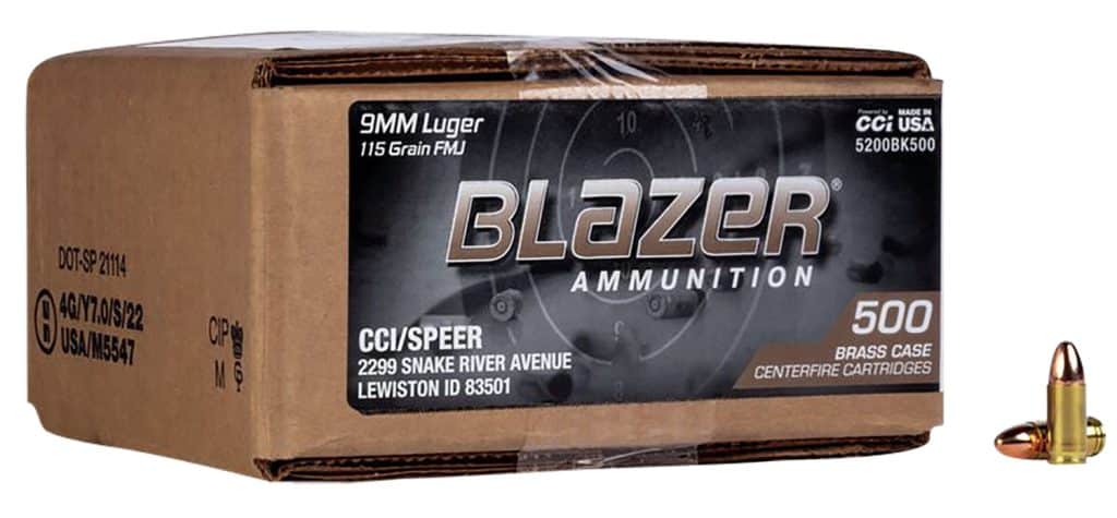 CCI 5200BK500 Blazer Brass Handgun 9mmLuger 115gr Full Metal Jacket