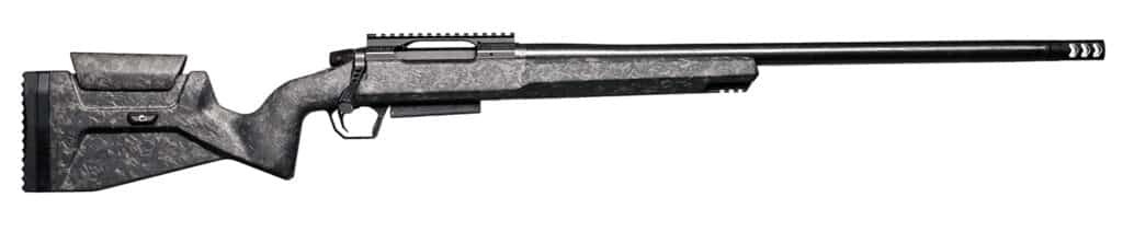 The MCR is built around our next-gen FFT carbon fiber stock, its light enough to carry all day yet tough enough to take a beating in the harshest terrain. Features a push-button adjustable cheek riser; full-length M-LOK forearm; QD mounts front and rear; a Rem 700-style precision action riding under a 20-MOA optic rail; skeletonized bolt handle and oversized knob; free-floating, hand-lapped Aerograde carbon fiber barrel delivers match-grade precision and is threaded, suppressor-ready and capped with a side-baffle brake; hybrid grip stock and a TriggerTech trigger.