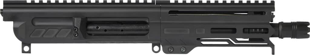 Its no secret that pistol stabilizing braces have been a target for scrutiny over the years, and those that enjoy building their own AR pistols have wondered what will come out of all the uncertainty. DISSENT is CMMG’s answer. Utilizing CMMG’s patent pending Compact Action and Radial Delayed Blowback technology with fixed ejector, DISSENT upper group houses the entire action and recoil assembly in the upper receiver, resulting in less bulk and length than traditional AR pistols. The forward non-reciprocating side charger allows for quick bolt operation without coming off target. DISSENT Upper groups include a 1913 Picatinny rail end plate to use in place of the lower receiver buffer tube.