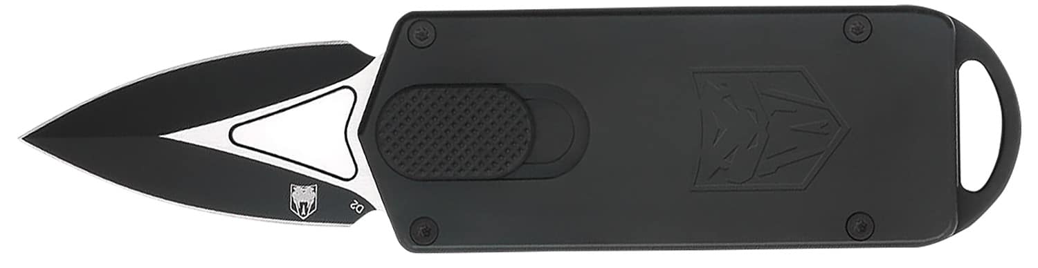 CobraTec Knives CTASPBLK ASP 1.94″ OTF Dagger Plain D2 Steel Blade, 3.31″ Black Aluminum Handle