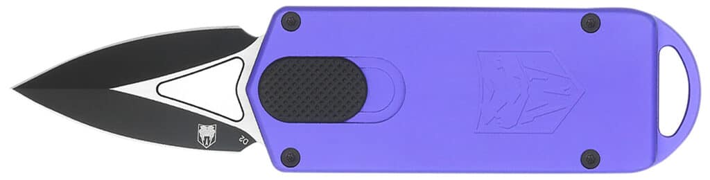 CobraTec Knives CTASPPUR ASP 1.94″ OTF Dagger Plain D2 Steel Blade, 3.31″ Purple Aluminum Handle