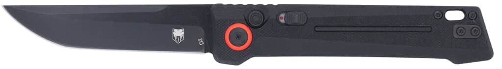 The Inferno is a high performance automatic knife built for those who demand power, precision and durability in a sleek, no-nonsense package. Featuring a Tanto-shaped D2 steel blade with a black titanium coating; opens with lightning fast deployment at the push of a button, giving you a quick and decisive edge when you need it most. For added safety, this knife includes a sliding safety switch to prevent accidental discharge, ensuring that the blade only deploys when you intend it to. The ergonomically designed handle provides a secure and comfortable grip for a range of users, while the ambidextrous tip-up clip offers convenient, right or left handed carry options. A lanyard hole adds extra versatility for those who prefer to keep their gear tethered or want additional carry options. Includes pocket clip.