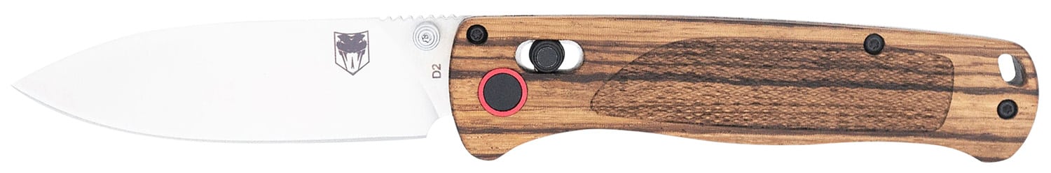 The Zebrawood Bar Lock knife combines sleek functionality with distinctive natural aesthetics. Featuring a durable aluminum body, it is both lightweight and robust, designed to handle tough tasks with ease. The Zebrawood scales add a touch of elegance and uniqueness, making each knife one-of-a-kind. The D2 steel blade is equipped with thumb studs for easy one handed opening. Includes pocket clip.