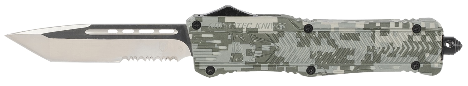 CobraTec Knives LADCCTK1LTS CTK-1 Large 3.75″ OTF Tanto Part Serrated D2 Steel Blade/Army DigiCamo Aluminum Handle Features Glass Breaker Includes Pocket Clip