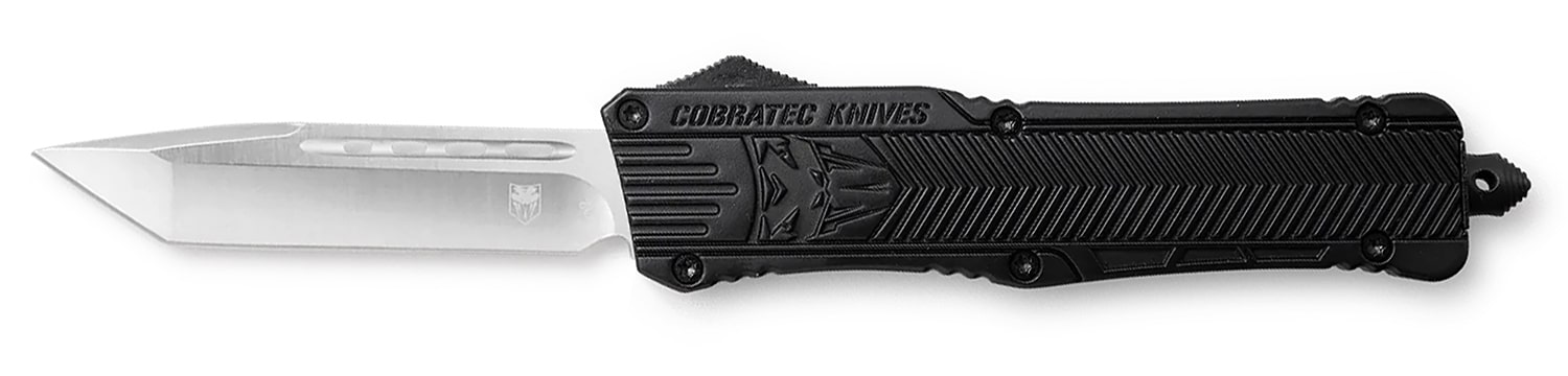 CobraTec Knives LBCTK1LTNS CTK-1 Large 3.25″ OTF Tanto Plain D2 Steel Blade/Black Aluminum Handle Features Glass Breaker Includes Pocket Clip