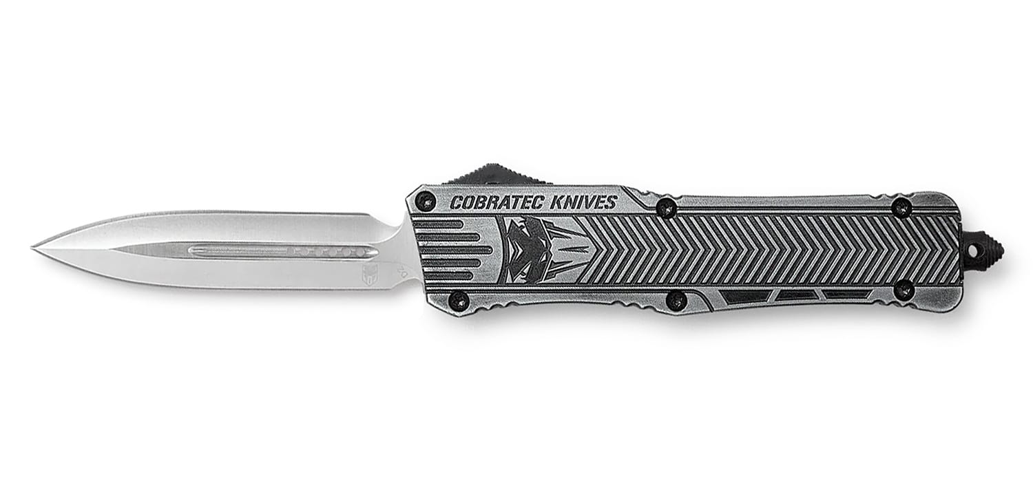 The CobraTec CTK-1 is designed for use with any task. Featuring aluminum alloy handles, D2 steel blade and OTF (out the front) opening design it allows for rapid deployment with minimal effort. The OTF knife features a pocket clip, a glass breaker for emergencies and includes a nylon sheath.