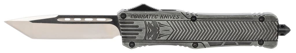 The CobraTec CTK-1 is designed for use with any task. Featuring aluminum alloy handles, D2 steel blade and OTF (out the front) opening design it allows for rapid deployment with minimal effort. The OTF knife features a pocket clip, a glass breaker for emergencies and includes a nylon sheath.