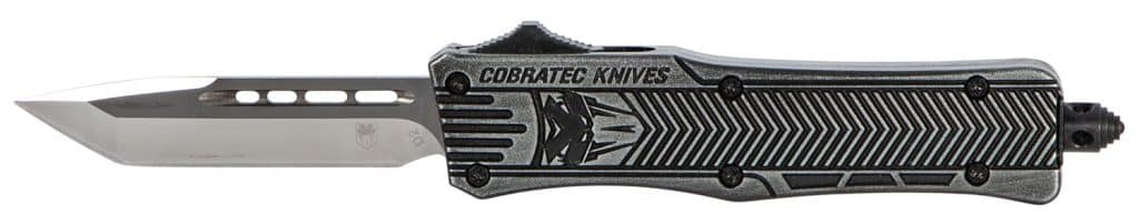 The CobraTec CTK-1 is designed for use with any task. Featuring an aluminum alloy handle and an OTF (out the front) opening design it allows for rapid deployment with minimal effort. Total length with glass breaker is 7″.