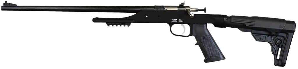 Keystone Precision Model Overlander w/ 6061 Aluminum Chassis w/Carbon Fiber Threaded Barrel and Adjustable Skeletonized Stock w/Carbon Fiber Cheek Rest. Features LOP 11 1/2″- 14 1/2″, depending on stock length used; adjustable rear Peep sight, Fixed front sight; drilled and tapped to accept Crickett scope mounts;Picatinny Rail; anodized aluminum w/rail.