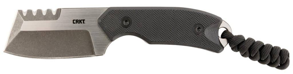 CRKT 4036 Razel Compact 2.32″ Fixed Plain/Top Veff Serrations Brushed Stonewashed D2 Steel Blade, Black G10 Handle, Includes Cord Fob/Sheath