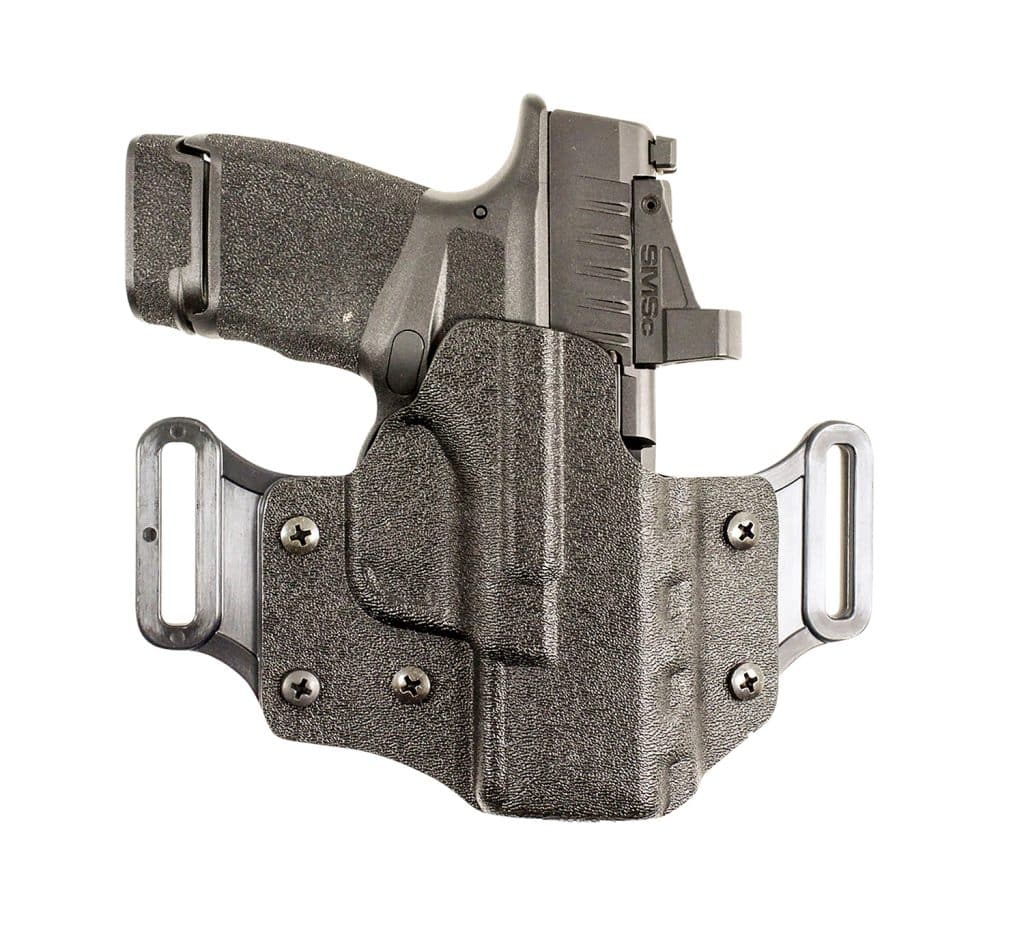 The Veiled Partner is an OWB precision molded Kydex holster. The exacting curvature allows for maximum concealment and fits like a second skin. It can be configured easily for both height and cant using 1.50″ or 1.75″ loop openings. It has adjustable tension and is optics compatible. Compatible with SIG P320C AND P250C W/ OR W/OUT ROMEO1 REFLEX SIGHT.