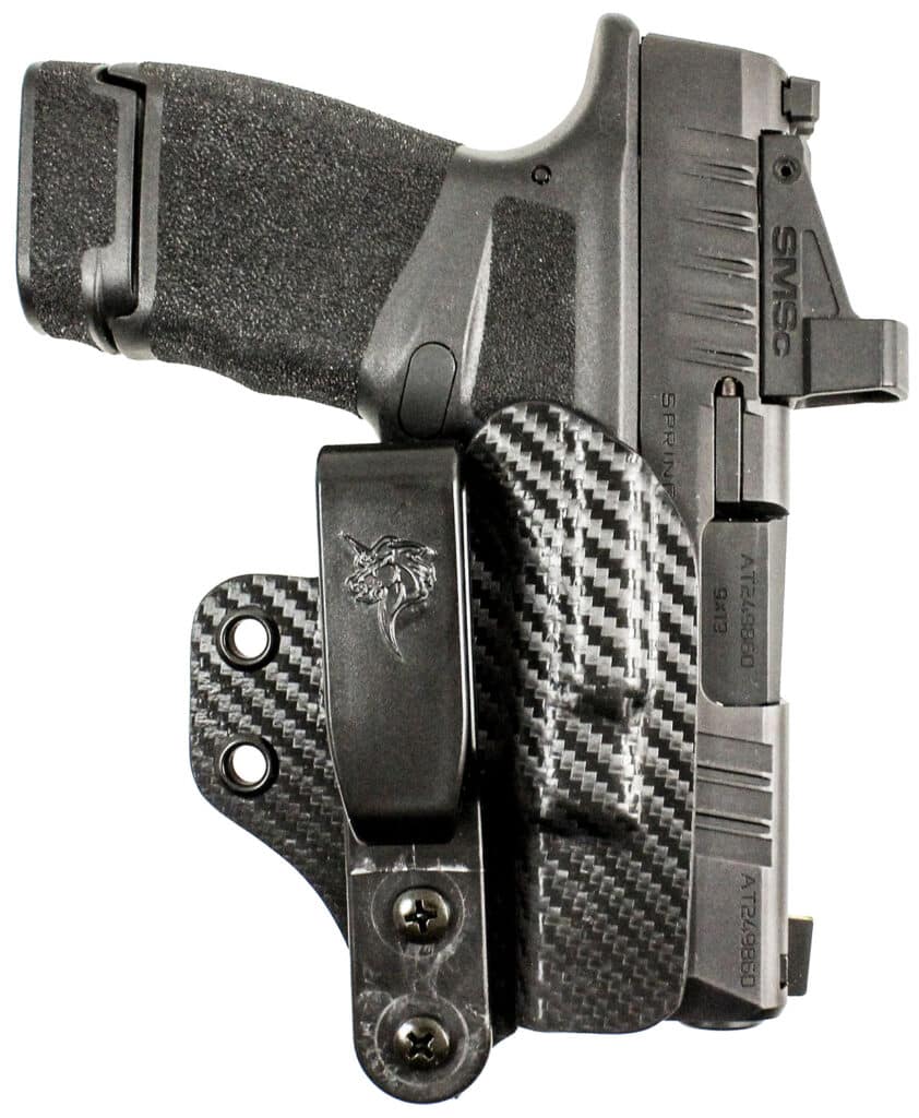 The Lifeguard Holster, is the minimalistic IWB holster. It fully encloses the trigger guard, making it both safe and secure. The Lifeguard features a carbon fiber finish for a rugged look and is fitted with a Tuckable C-Clip allowing for maximum concealment.
