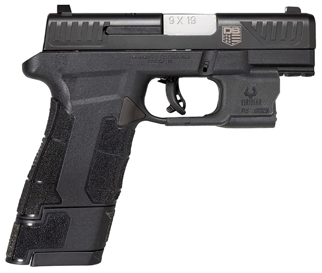 Diamondback DB0301P001 DBAM29 Sub-Compact 9mm Luger 3.50″ 12+1,17+1 Overall Black Finish with Serrated Nitride Stainless Steel Slide, Polymer Grip & Picatinny Rail Includes Viridian Laser & Holster