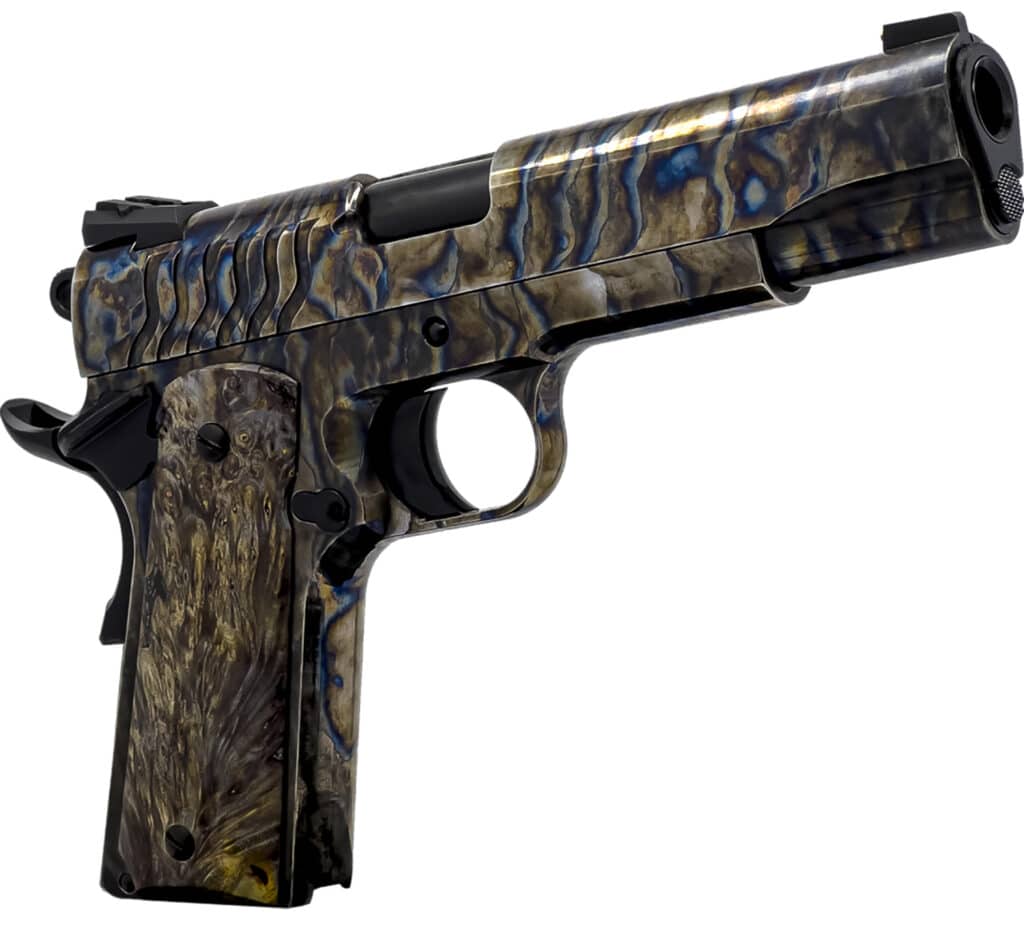 The 1911 Line uses forged steel for both the frame and barrel, ensuring unmatched durability and strength. The Slides are precision-machined using our CNC equipment, ensuring that every dimension and specification meets our rigorous quality standards. Includes hard case.