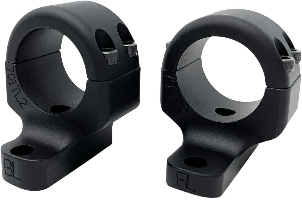Game Reaper 2 Signature Series two piece scope mounts fit long and short actions, some super short actions, left and right hand guns. Features- machined from a solid block of top-grade billet 6061 T6 aluminum, internal ring and base design allows for extra eye relief adjustment, reduces scope damage from tightening rings, no moving parts between the firearm and the scope, up to four times the threads of other mounts for absolute strength and security and absorbs shock and withstands temperature extremes better than steel mounts at a fraction of the weight. Base screws are 6-48 X 1/4 long. Ring screws are 6-40 X 5/8 long. Both use a 7/64 Allen wrench. Both mounts are not the same part. Back mount is taller than front mount because receiver is lower on back end.