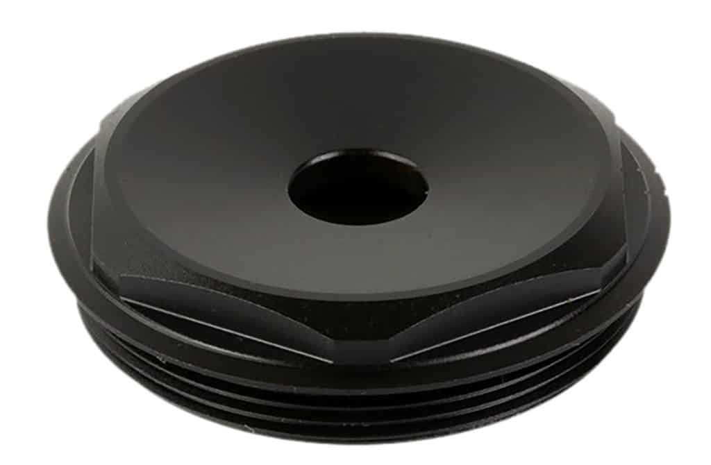 This accessory end cap provides a tighter bore aperture for use with 5.56 rounds. The cap is machined from American- made 17-4PH stainless with black nitride finish. Please note this cap does not include provision for the installation of a wipe as wipes are generally not recommended for supersonic 5.56mm use.