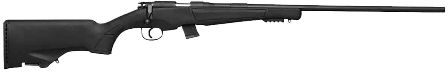 Somewhat atypical from ESCORT is the 22LR bolt-action rifle. Simply named the 22LR, this magazine-fed bolt-action rifle will make a great hunter, plinker and/or trainer rifle. Simple to operate and easy to maintain. The hard chrome-plated steel alloy receiver and barrel resist rust and corrosion while the smooth chrome plated bolt moves free-yet-precise. With an 25″ threaded barrel fitted with a protective cap and is ready to accept a variety of popular muzzle accessories. Picatinny mount on forend. The buttstock also has a storage slot for a spare magazine and is equipped with a soft ventilated buttpad. Includes sling studs and two 10rd magazines.