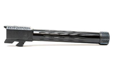 Faxon’s Match Series Pistol Barrels for G17 / Glock 17 are machined 100 percent in-house from stress-relieved 416-R stainless steel. These barrels are then given a black Nitride or PVD coating to increase lubricity, barrel life, and resistance to surface wear. All barrels are conventionally rifled to allow a wider range of ammunition to be used, including cast lead. The barrels drop into factory-spec slides with no gunsmithing required. Better-than-factory tolerances ensure a consistent, tighter lockup than OEM.