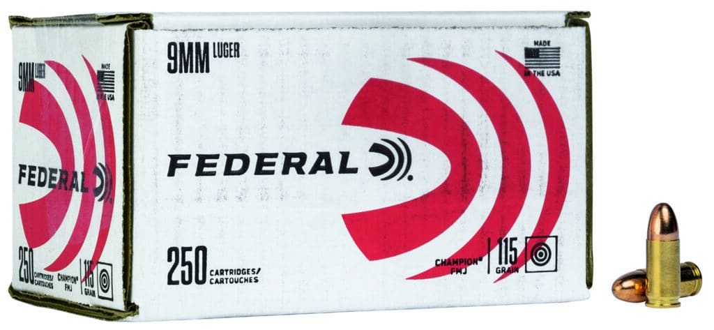 Federal C9115A250 Champion Training 9mmLuger 115gr Full Metal Jacket 250 Per Box/4 Case