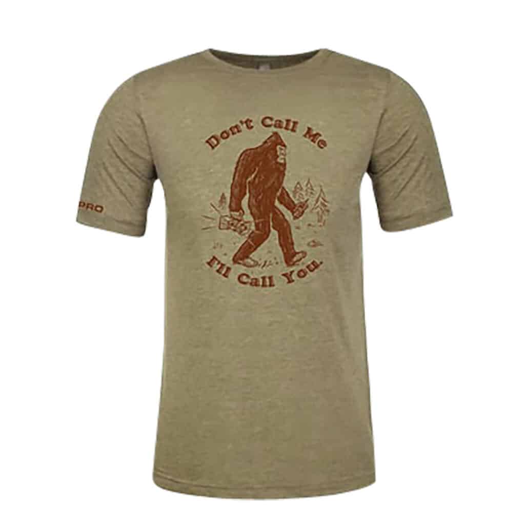 Foxpro T-shirt 65% Combed ring-spun cotton/35% Polyester construction. Durable rib neckband. Printed with soft-touch ink. FOXPRO Sasquatch with Xwave on front of t-shirt.
