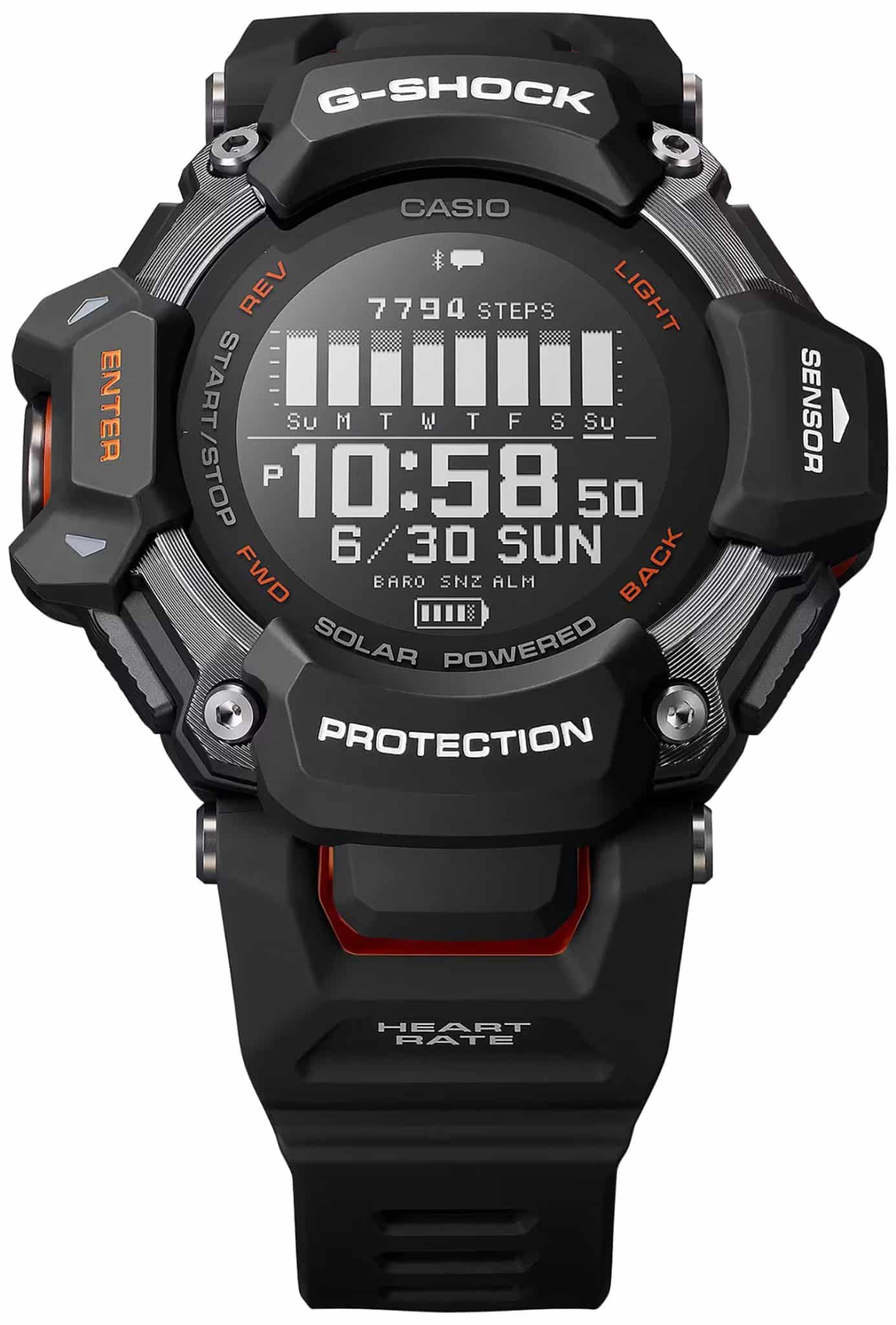 The G-SHOCK MOVE GBDH2000-1A black multi-sport watch is the ultimate workout companion, designed to take athletes’ performance to the next level. This timepiece is packed with features that make it stand out from other sports watches. Along with a heart rate monitor and GPS, this watch boasts an array of features to enhance athletic performance. Using optical sensors to provide heart rate measurements, an accelerometer to count steps, and a gyroscope to improve swimming sessions, athletes can accurately monitor their training sessions. Moreover, the production process was environmentally conscious, and the Bio-based resin band is made from organic renewable materials. This sustainable material helps to reduce the carbon footprint. In addition, the GBDH2000-1A black watch is rechargeable via USB or solar.