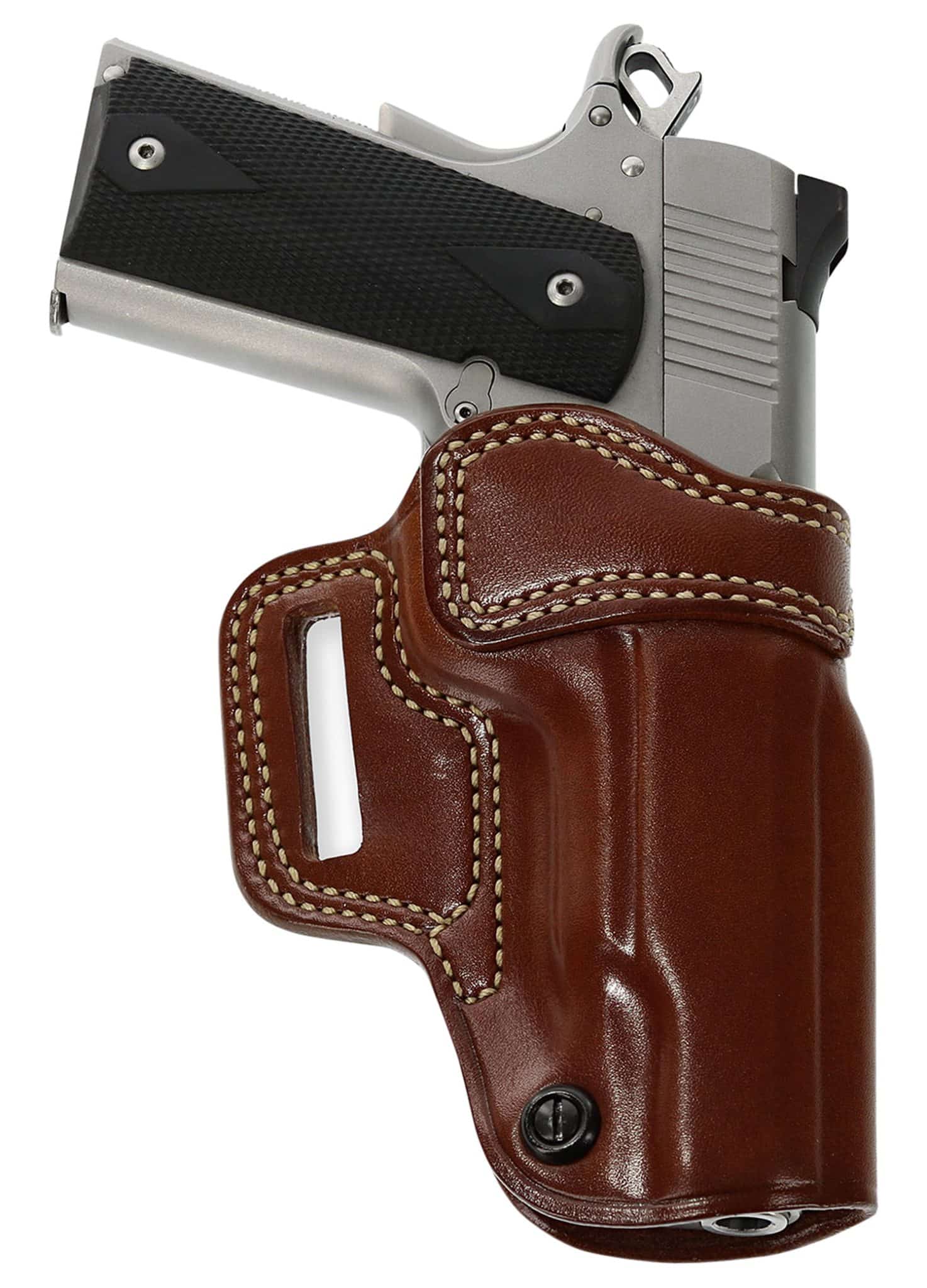 The Avenger combines all the desirable features of a practical belt holster. Featuring full firing grip accessibility allows an instant shooting grip, the molded sight rail prevent snags on the draw, and the reinforced holster opening provides easy one-handed return to holster. The vertical orientation allows the fastest, wrist-locked draw stroke. The tension unit makes micro-adjustment of the draw stroke simple. The Avenger is constructed of premium steerhide and fits belts up to 1.75″ wide. The Avenger is made for semiautomatic pistols. Compatible with Colt 4.25″ 1911, 4.25″ 1911 w/wo red dot; Kimber 4″ 1911, 4″ 1911 w/wo red dot; Para USA 4.25″ Staggered w/wo red dot, 4.25″ Single Stack Mag, 4.25″ Single Stack w/wo red dot, 4.25″ with Staggered Mag; S&W SW1911SC 4.25″, SW1911SC 4.25″ w/wo red dot; Springfield 4″ 1911, 4″ 1911 w/wo red dot.